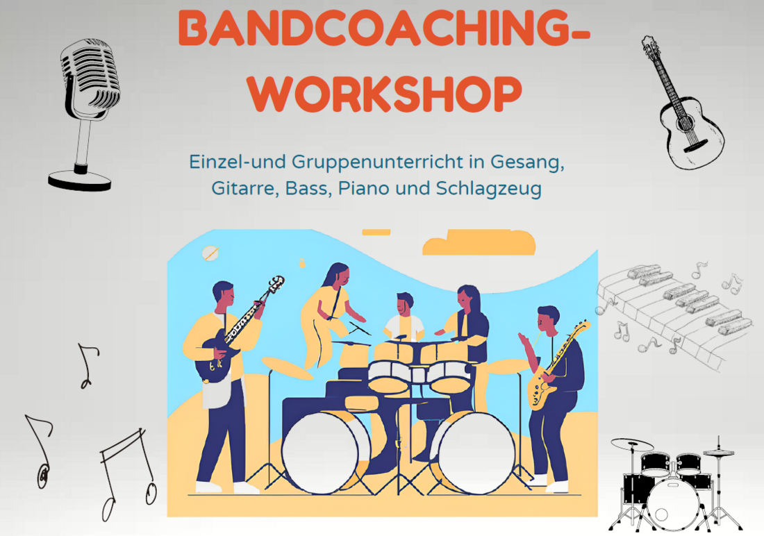 Beim Bandcoaching-Workshop kann wirklich jeder und jede mitmachen. Wie immer können sich feste Bands und Einzelpersonen für die Sparten Gesang, Gitarre, Piano, Bass und Drums/Percussion für unser Angebot anmelden.
